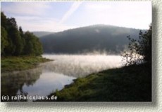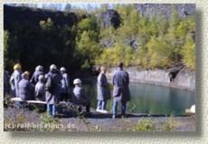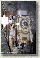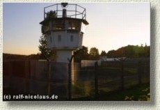 au fkommen, und so erreichte ich Hof am frühen Nachmittag. Von dort aus suchte ich mir über kleine Landstrassen den Weg nach Mödlareuth. Ich hatte über dieses Dorf, dass zu DDR Zeiten auch “Klein Berlin” genannt wurde im Internet gelesen. Es besteht nur aus ein paar Häusern und dennoch wurde es von einer Mauer mit allem was zur Innerdeutschen Grenze gehörte in der Mitte geteilt. Aus dem Internet wusste ich, dass Teile der Grenzanlagen dort als eine Art abschreckendes Freilichtmuseum zu besichtigen waren. Ich kam ziemlich spät in Mödlareuth an, hatte aber dennoch die Möglichkeit mir im Kleinen Museum eine Film über die Teilung des Dorfes anzuschauen Eine Teilung, die mit einem 10 Meter breiten Kontrollstreifen zwischen Ost und Westseite begann um dann durch Grenzanlagen nach und nach erweitert wurde, bis das Dorf 1966 durch eine Mauer getrennt war. Anhand des Filmes konnte ich mich gut in die Situation der Menschen dort hineinfühlen, wie sie plötzlich von einem Tag auf den anderen in Ihrer Bewegungsfreiheit eingeengt wurden, Ihre Kneipe auf einmal in einem anderen Staat war, unerreichbar, ja ich muss sagen das Ganze deprimierte mich. Nach dem Film schaute ich mir noch die Grenzanlagen an, die ein Stückweit im Original erhalten sind beschloss dann aber, dass ich genug von dieser Reise in unserer jüngste Vergangenheit hatte, nicht ohne zuvor aus dem kleinen Prospekt des Dorfes zu erfahren, dass Mödlareuth auch heute in gewisser Art geteilt ist, wohnen doch die Hälfte der 50 Einwohner in Bayern, während die andere Hälfte in Thüringen Ihr Heim haben. Die Dunkelheit nahte, ich hatte noch keine Übernachtungsmöglichkeit gefunden und somit setzte ich mich auf meine Yami, lies die Grenze Grenze sein und machte mich auf die Suche nach einer Bleibe. Es war nicht ganz einfach in diesem ziemlich verlassenen Zipfel Thüringens eine solche zu finden, zumal Oktober sicherlich nicht der Höhepunkt der Fremdenverkehrssaison ist. Ich fuhr noch ein Stündchen über total verlassene kleine Landstrassen, bis mich ein Schild in die Ortschaft Pottiga lockte. Die mit dem Schild werbende Pension Rüdiger war tatsächlich offen und stellte mir ein nett eingerichtetes Zimmer zur Verfügung. Abendessen und Bier schmeckten vorzüglich und der Wirt zeigte mir seinen kleinen Schatz. Er hatte in liebevoller Kleinarbeit mehrere Fotoalben zusammengestellt mit den Sehenswürdigkeiten der Region. Und so war der Plan geboren, die ursprünglich an der alten Grenze entlang führenden Route zu verlassen und mich etwas der näheren Umgebung zu widmen. Ich werde oft gefragt, was ich daran finde nicht in einer Gruppe, sondern mutterseelenallein auf meinem Motorrad auf Reisen zu gehen, und genau das vorher beschriebene ist der Grund. Die Freiheit unterwegs meine Planung über den Haufen zu schmeissen und eine andere Route zu wählen, die mir attraktiver erscheint, ohne mich dafür mit anderen Mitfahrern einer Gruppe abstimmen zu müssen. Am nächsten Morgen machte ich mich nach einem guten Frühstück und einer angenehmen Unterhaltung mit dem einzigen Mitbewohner der Pension , der mit dem Fahrrad unterwegs war, auf den Weg nach Lehesten, wo ein Schieferbergwerk zu besichtigen ist. Bergwerke sind neben der Grenze auch etwas, was mich schon immer fasziniert hat. So hatte ich mir schon das eine oder andere Schaubergwerk im Ruhrpott angeschaut, sollte hier aber eine ganz neue Erfahrung machen. Nach einigen Fehlversuchen, die mich durch wunderschöne kleine Dörfer und Alleen führten, fand ich dann den richtigen Weg zum Bergwerk. Dort wartete schon eine Gruppe um in den Berg zu fahren, oder wie immer die Kumpels diese Horrorfahrt auch nennen mögen. Der Führer hatte bis vor ein paar Jahren selber hier unter Tage gearbeitet und versorgte uns mit vielen Detailinformationen über die Arbeit an diesem Ort. Informationen, an die ich mich nicht mehr erinnern kann. Sehr wohl kann ich aber das Gefühl nachvollziehen, dass ich dort unter Tage empfand. Das Bergwerk ist anders als Schaubergwerke, die ich bisher besichtigt hatte. Die Maschinen sind nicht sauber poliert, keine Museumsstücke in diesem Sinne, sondern man ac htet dort in Thüringen darauf, dass alles so aussieht, als würde gleich die nächste Schicht einfahren um die mühsame Arbeit zu beginnen. Alles ist funktionsbereit und die eine oder andere Maschine wurde in Betrieb gesetzt und uns vorgeführt, so dass ich mir ein verhältnismässig gutes Bild von dem Lärm machen konnte, der dort geherrscht haben muss, als sich die Schiefergewinnung noch rentiert hat. Man spürt, dass die Menschen, die dieses Bergwerk betreuen, selber noch vor ein paar Jahren hier gearbeitet haben. Sie machen nicht den Eindruck von unbeteiligten Museumsführern, wie ich es anderorts erlebt habe, und ich kann jedem eine Besichtigung nur empfehlen. Endlich wieder am Tageslicht verabschiedete i ch mich mit einem “Glück Auf” und macht mich auf den Weg, ohne so recht zu wissen, wohin er mich denn nun führen sollte. Er führte mich Kreuz und Quer durch das Fichtelgebirge, Teile des Schiefergebirges. Ich kann die vielen kleinen Strassen auf der Karte heute kaum noch rekonstruieren, doch es ist zu sagen, dass es himmlische Motorradstrecken waren, durch Wälder und Berge, Kurvenspass pur, immer wieder unterbrochen durch Einfahrten in kleine, verlassen wirkende Ortschaften. Es war am frühen Nachmittag, als ich Weimar erreichte. Die Stadt lud zum Verweilen ein, aber ich musste weiter, da mein Endziel ja besagtes Motorradtreffen war. Ich nahm mir all erdings noch die Zeit die Gedenkstätte Buchenwald zu besichtigen, einen jener Orte, an dem der Horror unserer deutschen Geschichte nachzuempfinden ist. Ein riesiges Gelände mit einem fast leeren Platz, an dem sich früher die Baracken des KZ befunden haben. Nur noch die Fundamente dieser Behausungen sind noch zu sehen, ein oder zwei Gebäude sind rekonstruiert und Fotos dokumentieren, wie es dort einmal ausgesehen haben muss. Ich verweilte ei